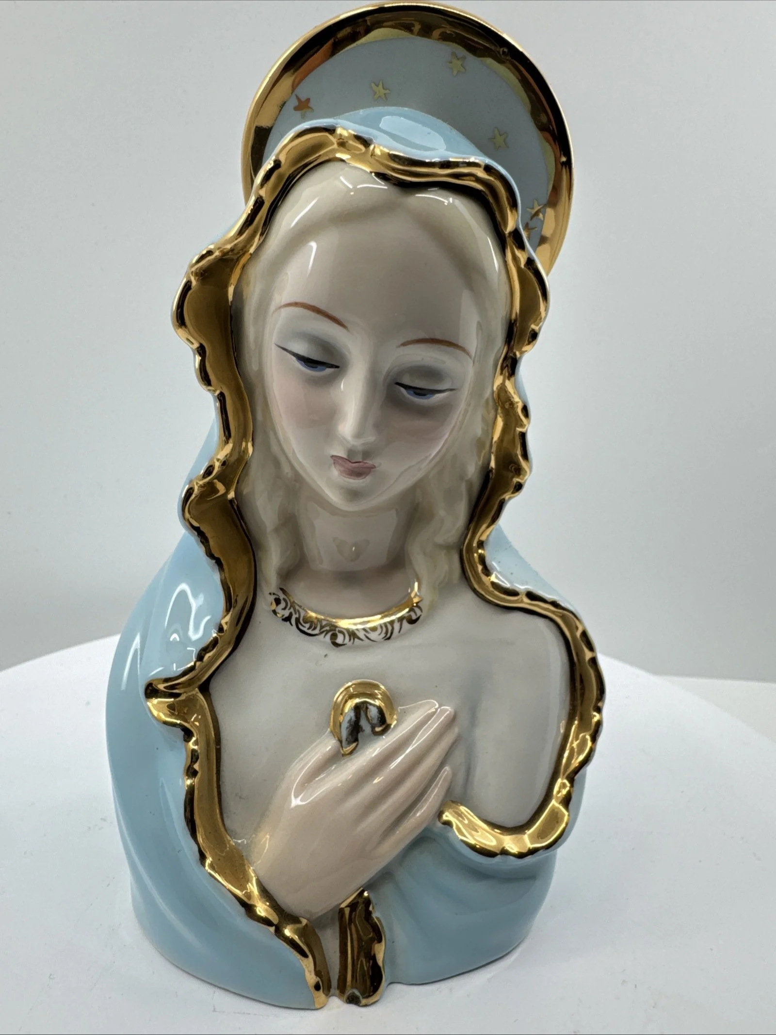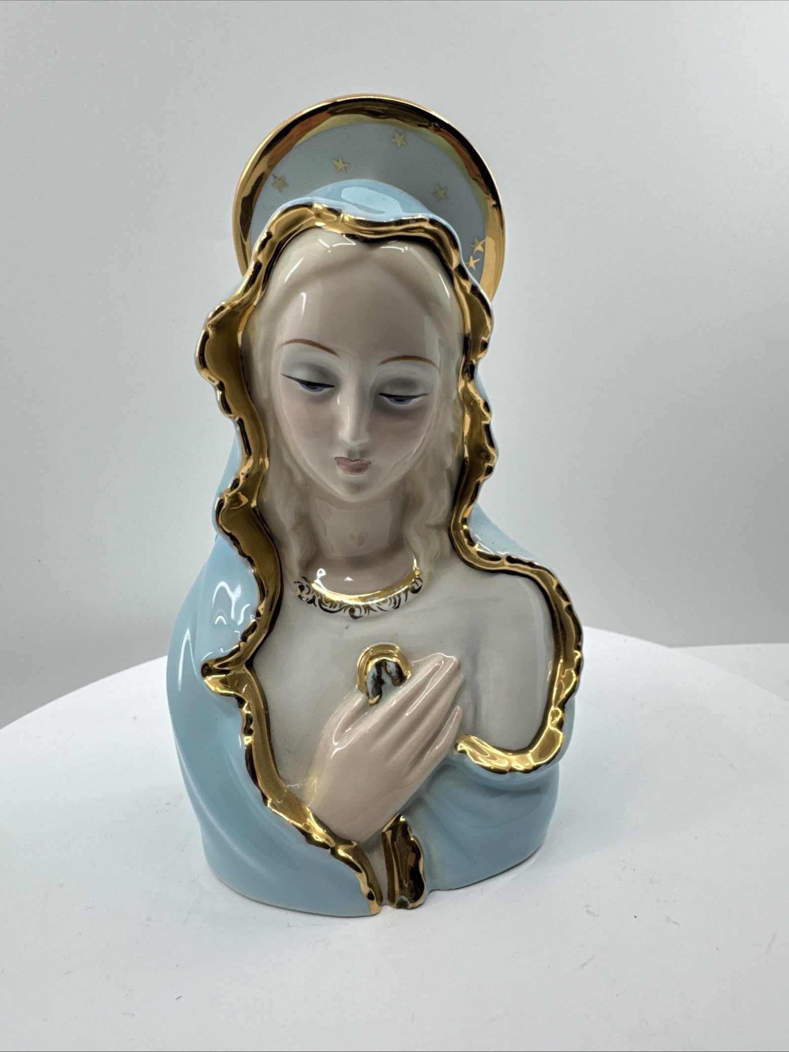 Rare Excellent Condition Mcm 1950S Japan Sacred Blue Gold Star Madonna Figure