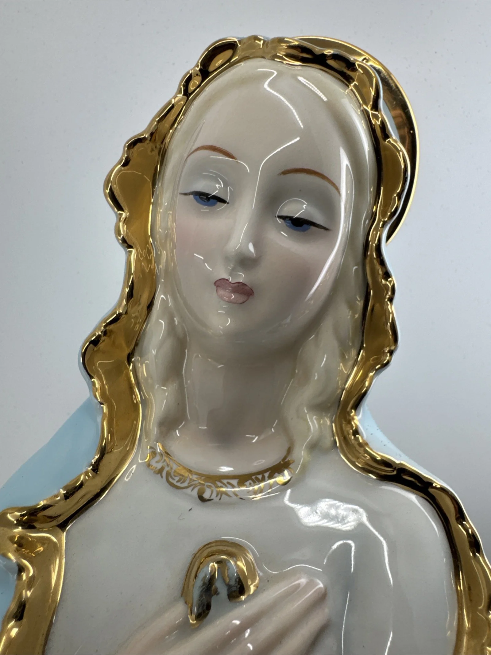 What a beautiful piece and it's in stunning condition… Made in Japan in the 1940s or 1950s… True MCM mid-century modern, mid-century, this is a religious figure but it's also a work of art and a collectors item and it's rare, especially to be in such great condition… Please see the gallery for close-up pictures and measurements… It is wrapped extremely carefully with a lot of extra padding and cardboard and tissue and etc., so that the shipment is protective because shipping and delivery can often be quite brutal in my experience… But I have a long experience now of getting feedback for great shipping and handling… Because I care and I spend more of my own money in order to ensure that my pieces that I lovingly hand pick will go to their new homes and not break… Of course, sometimes things happen or the handling is really bad and there's nothing I can do it's beyond my control but as you can see in my feedback , I always have my customers back.